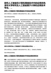 探究人工智能在计算机网络技术中的应用优势,清华大学研究生人工智能属于计算机应用技术专业。...