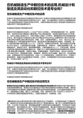 智能机器人数控技术在机械制造中的应用,数控技术、模具制造技术、汽车应用和维修的应用是什么?...智机器人数控技术在机械制造中的应用数控技术、模具制造技术、汽车应用与维修的应用...我在此向你推荐工业机器人专业。就业前景良好。随着2015年中国机器人市场的快速增长,对相关人才的需求也在不断增加。然而,机器人相关人才无法持续跟进,导致专业人才短缺。因此,应大力培养工业机器人及其智能设备的集成设计、编程操作和日常维护。研究生智能制造与数控技术和机器人技术哪个方向就...智能制造会更好。中国是一个制造大国。现在许多公司正在升级他们的智能制造设备,这些设备一般可以进入设备的研发部门。前景广阔。机器人技术...