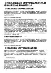 《计算机网络基础》课程中的知识要点分析,网络基础课程的主要内容是什么?《计算机网络基础》课程中的知识要点分析网络基础课程的主要内容是什么?本文介绍了计算机网络的发展概况、基本概念、计算机网络的分类和数据通信的基本知识。。本文主要介绍计算机网络的基本知识,包括计算机网络的基本概念和组成、数据通信的基本概念、现场互连、TCP/IP参考模型和局域网中常用的通信协议。计算机局域网组如何进行计算机网络基础课程的教学“计算机网络技术是计算机技术和通信技术紧密结合并不断发展的一门学科。开设计算机网络”基础课程的目的是培养学生理解计算机网络的基本概念、原理和方法,掌握计算机网络应用的基本工具,具备熟练操作互联...