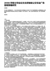 28566字硕士毕业论文北京智能公交车站广告营销策略研究论文概述:本文是工商管理论文,本论文尝试研究北京智能公交站亭广告产品营销策略,以保障智能公交信息系统运营的可持续性,如何设计合理的广告产品形态、定价,及如何促销这些广告产品的营销策略论文正文:介绍1.1研究背景近年来,北京在公交智能化进程中取得了一些进展,如在公交车上安装了全球定位系统和语音报站等智能服务。虽然公共交通智能的发展已经开始,但在公交车站和亭等车的乘客面临的问题是很难掌握公交车的到达时间。这方面的缺陷严重影响了北京公共交通系统的服务水平,给市民出行带来了一定的困难。2005年8月,经北京交通委员会批准,北京公交集团计划在北京建...