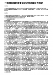 开题报告金融硕士毕业论文开篇报告范文