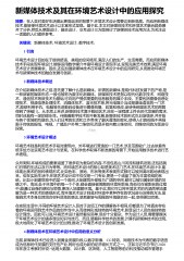 新媒体技术及其在环境艺术设计中的应用探究摘要:在人类对美好生活提出更高追求的背景下,环境艺术设计需要达到新高度。而应用新媒体技术,能够使环境艺术设计以丰富形式呈现。基于此,本文对新媒体技术和环境艺术融合趋势展开了分析,然后从草图设计、融合设计、交互设计三方面探讨了新媒体技术应用方法,为关注这一话题的人们提供参考。 关键词:新媒体技术;环境艺术设计;数字技术; 1 引言环境艺术设计目的在于提供舒适、美观的空间场所,满足人们的生产、生活需要。而应用新媒体技术手段实现环境设计,能够运用数字媒介丰富环境设计表现手法,呈现完美艺术效果,满足环境艺术设计发展需求。因此,还应加强新媒体技术在环境艺术设计中...