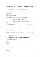 青岛版2022-2023六年级科学上册期末试卷及答案一、脚踏实地(看你记得牢不牢。请把正确答案填在横线上。)1.人类80%的疾病是由 引起的。。2.鱼的保鲜方法有 、 、 、 等3.高温和高压能使岩石变为 。4.当一个物体沿直线从一个点移到另一个点时,这种方式叫做 。5. 是地球上看到的月球被太阳照亮的部分。6. 是地球唯一的天然卫星。它自身的引力导致地球有 现象。7.食物链中的消费者包括 、 、 。生产者包括 。8.青蛙冬眠的目的是 。9.蜗牛1小时仅能运动 米...