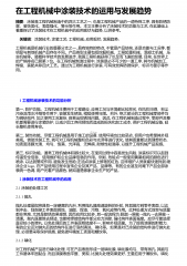 在工程机械中涂装技术的运用与发展趋势摘要:涂装是工程机械制造中的四大工艺之一,也是工程机械产品的一道特殊工序,具有防锈防腐、装饰美化、表面强化、警示等作用。本文主要分析了涂装技术的功能与工艺,在此基础上着重探讨了涂装技术在工程机械中的应用现状与趋势,以供参考。 关键词:涂装技术;涂装工艺;工程机械;应用现状;发展趋势;工程机械是机械行业的重要分支之一,具有独特的特点,不管是产品结构,还是功能与工况等,都明显与其他机械产品存在不同。产品类型主要包括挖掘机械、工程起重机械、混凝土机械、压实机械等。随着科学技术的发展进步,我国工程机械获得了长足而飞速的发展,目前,在世界上的产销排名已居第3位。在工程...