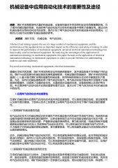 浅谈机电一体化中的电机控制及保护措施摘要:机电一体化就是把电子技术应用到信息的沟通上、传播控制方面等等,从其构成内容上分析就是电子技术和机械的相互融合,以此保证两者之间的优势能够互为一体共同促进行业的进步和发展。随着科学技术的提升机电一体化渐渐变成了一门专业的学科,它将电子技术、自动控制技术以及各项机械技术全部集成在一起,使得最终的工程技术能够实现低能耗、高质量。该技术的应用和发展使得电机使用效率大大提升,但是很多人却忽视了对该设备的控制,因此对其进行详细分析具有一定的现实意义。 关键词:机电一体化;电机控制;一、引言机电一体化技术包括电子、机械、信息技术。未来机电一体化将朝着自动化与智能化的...