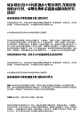 城乡规划设计中的美丽乡村规划研究,在规划美丽的乡村时,你想去找中农富通城镇规划研究所吗?