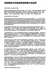互联网技术在智慧舒适家居行业运用智慧舒适家居行业的概念和范畴智慧舒适家居就是通过把感应器嵌入各种暖通、电器、照明、安防等设备形成物联网,然后将物联网与现有的互联网整合起来,实现建筑、网络通信、信息家电、设备自动化,集系统、服务、管理为一体,高效的实现人与物理系统的整合,全方位的解决和调整环境的温度、湿度、气流、辐射噪声、光亮、饮水质量等,营造一个舒适、安全、便利、节能、环保的空间环境。智慧舒适家居的行业特征和趋势智慧舒适家居行业的市场基础是物联网和城市化进程,其市场容量无限大。由于生活水平提高,智慧舒适家居系统将成为生活的必需品,例如,目前空调系统是必备的,采暖系统在南方某些地区也有成为必备系...