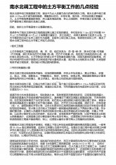 南水北调工程中的土方平衡工作的几点经验南水北调中线工程是国家工程,是迄今为止人类最为浩大的单项调水工程。南水北调中线工程全长1432km,总干渠为梯形断面,横断面分挖方、半挖半填、填方段,开挖及回填工程量巨大。土方平衡结果直接影响取、弃土量及相应的取、弃土占地面积,并牵涉施工征地问题,从而严重影响工程的造价及施工进度。因此,做好土方平衡具有十分重要的意义。笔者参与了南水北调中线工程辉县段第三施工标段的建设,本标段全长7.1km,设计开挖量509万m?,土方填筑量343万m?,工程需要大量取土、弃土和调土,并需大量的取土和弃土占地。土方平衡的优化设计在本工程中尤为重要,目前本工程已施工完成。笔者...