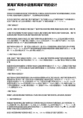 某尾矿库排水设施和尾矿坝的设计1项目概况项目区内水系属珠琦河流域,为常年期河流,水源较近,珠琦河支流在矿区东侧福安堡通过,水流长年不断.水源及电源可以满足生产、生活用电及用水的需求.本次设计研究为矿山的扩建工程,扩建后选矿厂生产规模4000t/d,扩建后的选矿厂已经建成投入试生产,尾矿排入矿山正在使用的1#尾矿库.选矿厂扩建后排尾量131.7×10^4t/a.2尾矿设施设计该矿原1#尾矿库不能满足扩建后选矿厂服务年限内堆存尾砂需要,需重新选库址修建2#尾矿库.2#尾矿库为新建尾矿库,尾矿设施设计内容为,尾矿初期坝,尾矿堆积坝,尾矿坝排渗设施、尾矿坝监测设施,尾矿库区排水设施,尾矿输送系统,尾矿...
