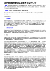 淮水北调四铺泵站工程优化设计分析 摘要:本文分析了安徽省淮水北调工程四铺站选址、泵房形式、拦污闸与泵房布置、进出水结构、基坑开挖及基础处理、泵站总体布置等优化设计方案,为建成一座既安全、经济,又具现代、生态特点的泵站提供依据。 关键词:四铺站;总体布置;结构形式;淮水北调工程;SipustationdesigncharacteristicsofthediversionwaterfromHuaihetonorthprojectinAnhuiprovinceZhangDanqing 1 工程简介四铺站为安徽省淮水北调工程先期开工建设的第一座泵站工程,位于淮北市濉溪县境内,为淮水北调工程输水沿线上...