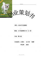 文档仅供参考目录一、创业背景项目背景二、创业构思项目介绍、项目经营、项目优势三、团队介绍团队成员的优势四、市场分析市场调查与行业前景分析、竞争分析、弱势分析五、组织与场地分析组织结构、场地的选取、参考选址类型、具体选址要求、目标消费群体、经营面积定位、装修标准定位六、营销计划营销计划与营销策略、具体操作流程、健身方案123七、经费预算经费预算表、经费的筹措八、附录资产负债表、利润表一、创业背景1、项目背景这几年的研究调查表明,大学生体质健康状况不容乐观,例如体质下降,容易生病等。这不仅影响了大学生当前的学习,而且也对他们未来所从事的事业产生了不可忽视的影响。尤其是这几年NBA、英超等体育活动的...