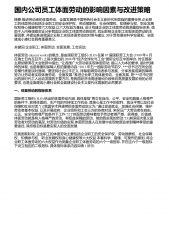 国内公司员工体面劳动的影响因素与改进策略摘要:推进劳动者的体面劳动、全面发展是中国特色社会主义新时代所面临的重要任务.企业职工的体面劳动包括企业职工的安全保护权、劳动报酬权、社会保障权、知情参与权、职业发展权和身心健康权等六大权益.以六大权益为基础,设计构建企业职工体面劳动的测量指标体系,借助千人问卷调查实证分析我国企业职工体面劳动的现状,找出影响企业职工实现体面劳动的主要因素,并提出推进我国企业职工实现体面劳动的对策与建议,对于贯彻落实科学发展观、全面建成小康社会具有重要意义.关键词:企业职工;体面劳动;全面发展;工会运动;体面劳动(decentwork)的概念,是由国际劳工组织(ILO)在...