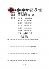 营销计划书计划概要营销现状分析SWOT分析拟定营销目标营销策略组合行动方案财务预算控制管理资源吧(www.glzy8.com),提供海量管理资料免费下载!一.计划概要1.制定本计划的目的醋吧作为一种新型时尚的服务行业,其本身的技术性、产品配方的科学性、产品的保健功能,很容易得到追求时尚的年轻人和修身养性的老年人的喜爱。本计划欲在开发和推广此产品迅速占领市场的同时,赢得高额利润。2.本计划实施纲要今年夏季来临之际,快速打开哈尔滨这块新市场,并逐渐占领这块市场。管理资源吧(www.glzy8.com),提供海量管理资料免费下载!首先,在哈尔滨高校周围开辟新的醋吧饮品屋,从而抓住学生这块消费群...