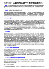 ASP.NET三层架构在软件开发中的运用探究 摘要:三层架构是指逻辑上的三层架构,通过在客户端和数据库之间引入中间层,将复杂的业务应用进行封装,再从应用模型中分离出来,使得开发的系统更具灵活性、可扩展性和可维护性。 关键词:数据访问层,业务逻辑层,表现层随着软件技术的发展,三层体系架构的应用越来越广泛。ASP.NET平台将前台界面和后台代码进行分离,用模块化的设计方法让程序的可读性更好、执行效率更高。ASP.NET三层架构开发应用软件时,将业务逻辑放在中间层,与用户界面分开。若需要修改应用程序代码,只需要对相应层代码进行修改,而不需要对所有程序进行修改,便于开发人员对系统进行分析、...