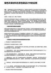 绿色环保材料在茶包装设计中的应用摘要:中国传统茶文化是以茶为载体的文化,它具有不可替代的人际交流和文化交流的功能和价值。然而,在茶包装的设计之中,却存在华而不实的问题,不仅导致环境污染,而且也损害了消费者的正当权益。为此,需要从绿色环保的角度,对茶包装进行设计,要转变原有的茶包装设计中的能耗观念,采用绿色环保的节能型材料,“使之成为开启茶文化与人类环境和谐相处的金钥”匙。关键词:茶包装;设计;绿色;环保材料;在艺术和文化的包装设计种类之中,茶包装设计也是与人们的生活密切关联的内容,然而,在原有的茶包装设计过程中,由于忽略了对环境的保护,导致了材料的严重浪费,形成过度包装的恶性循环,损害了消费者...