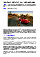 驾驶员心理素质与汽车安全行使的关联性探究