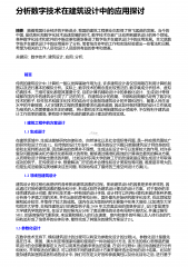 分析数字技术在建筑设计中的应用探讨摘要:随着我国社会经济的不断进步,我国的建筑工程事业也取得了突飞猛进的发展。当今的中国,是信息化和数字化技术迅速发展的时代,数字技术也被广泛应用到建筑设计的各个领域。各种数字化技术和软件的不断改革和更新推进了数字技术在建筑设计中的应用发展。本文就数字技术在建筑设计中的应用展开了分析,笔者结合多年的工作和实践经验提出一些看法和见解,希望为相关的工作人员和设计人员提供有益的参考和借鉴。关键词:数字技术;建筑设计;应用;分析; 前言传统的建筑设计中,计算机一般以发挥辅助作用为主,许多建筑设计者仅仅局限在利用计算机制图以及进行基本的模拟分析。实际上,数字技术的概念是...