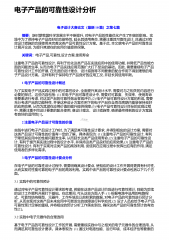 电子产品的可靠性设计分析 电子设计大赛论文(最新10篇)之第七篇 摘要:新时期我国科学发展水平不断提升,对电子产品的性能优化产生了积极的影响。实践中为了保持电子产品良好的功能特性,延长其使用寿命,需要注重其可靠性设计,且通过对有效设计措施的合理使用来完善这类产品可靠性设计方案。基于此,本文就电子产品的可靠性设计展开论述,为提升其潜在的应用价值提供保障。 关键词:电子产品,可靠性,设计方案,使用寿命注重电子产品的可靠性设计,有利于优化这类产品在实践应用中的使用功能,并降低产品性能方面的问题发生率,从而为电子产品实践应用范围扩大打下坚实的基础。因此,需要重视电子产品可靠性设计工作的开展,在先...