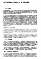 电气系统自动化中PLC技术的运用 1 PLC 技术概括PLC(可编程控制器)技术是一种针对于工业控制领域设计的控制器,它是由早期的可编程逻辑控制器发展演变过来的,现今的PLC技术已经不仅仅只包含逻辑控制领域.PLC技术分为三个操作阶段,第一个阶段为输入阶段;通过采样数据,对用户或者机械的程序进行数据采集、扫描和设定,将已有的输入状态和数据保存在PLC的映像区内.第二个阶段为用户程序执行阶段;这个阶段所实现的功能是对用户程序进行逻辑运算,根据运算的结果,设定新的逻辑程序,并刷新在RAM存储区域中的额位置状态,大多数用户程序扫描过后呈现成梯状型.第三个阶段为输出刷新阶段;根据扫描的用户程序,PL...