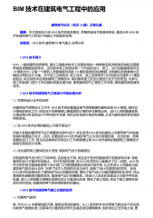 BIM技术在建筑电气工程中的应用建筑电气论文(范文10篇)之第九篇 摘要:本文将首先介绍BIM技术的相关概念,并概括该技术的具体特征,最后分析BIM技术在建筑电气工程设计和施工中的具体应用。 关键词:BIM技术,建筑电气,电气施工,应用分析 1 BIM技术简介BIM,一般指建筑信息模型,是在三维数字技术上发展起来的一种能够全面详细地反映和还原建筑物各项数据的新技术。这项技术将工程项目每一个阶段的设计、施工、运行的数据都保存在3D模型当中,让每一个建筑人员都能够利用此3D模型查找相关的数据,并根据这些数据做出正确的决策和设计方案。对于施工过程而言,施工成本、施工进度等非几何信息也与建筑3D...