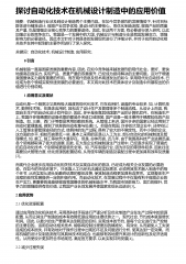 探讨自动化技术在机械设计制造中的应用价值