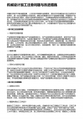 机械设计加工注意问题与改进措施伴随科学技术不断迅猛发展,人们也在不断提升自身要求,而针对于机械的设计加工自然也不会例外,进一步企业想要抢占市场先机,便应当尽量提升生产产品规格与质量,并提高对产品的加工标准与设计要求,促进产品有序可持续生产,为消费者使用目的与审美标准而努力。但是,对机械进行设计加工时还是有这样或那样的问题存在,凭借对加工成本和加工工艺做多考虑以后,已经知晓对机械进行设计加工时对于材料,生产标准水平与润滑剂等都有极高要求,换句话讲对机械进行设计加工要从多角度多层次入手,才会最终提升产品设计加工的质量与水平,从而促进企业可持续发展下去。1设计加工应注意问题1.1表面存在质量问题产品...