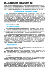 员工归属感论文(优选范文6篇)企业是一个经济与人相融合的组织,始终处于一个变动的发展过程之中,在这样的企业中,提升员工的归属感对企业人力资源管理有重要的作用。通过对员工归属感的研究,我们可以从侧面了解企业的成长和蜕变,以及今后的发展方向,培养企业员工的归属感,让其最大化的创造自身的价值,对任何一个企业来讲,都是极其重要的。文中是搜索整理的员工归属感论文6篇,以供参考。 员工归属感论文第一篇:浅析如何提高员工的归属感 摘要:员工对企业团队的归属感是指员工在经过一段时间的工作后,在思想、心理、情感上对企业团队产生了获得感、安全感、幸福感、价值认同感和公平感、工作使命感和成就感,它们使员工对企业...