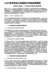 CAD技术在化工机械设计中的应用简析 【第五篇】论文题目:CAD技术在化工机械设计中的应用简析摘要:进入二十一世纪以后,中国的经济水平不断提升,各行各业都获得了极大的发展和进步,尤其是化工行业处在蓬勃发展的朝阳阶段,如何做好化工机械设计工作,就成为了摆在我们面前重要的课题之一。在不断的探索和研究中,我们发现如果能够将计算机技术与化工机械设计进行有机的融合,将能够取得非常喜人的成果,在这种情况下,本文针对在新时代背景下,就CAD技术与化工机械设计的融合进行一定的分析。关键词:CAD技术;化工机械设计;应用;近年来,我们国家的高新科技取得了新的进展和提升,其中最为亮眼的无疑就是CAD技术,它在各...