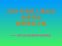 20XX年残疾人奥运会体育用品营销策划方案------棉毛运动休闲袜的品牌策划甘肃某棉毛制品生产厂由于其产品质量优越,于今年六月在北京举行的“2008年北京残疾人奥运会”赛用毛巾招标大会上一举夺魁,成为2008年北京残疾人奥运会赛用毛巾指定生产商,并被予以2008年北京残奥会会徽图标商标赞助使用权。此生产厂商以于2006年12月引进一批进口棉毛袜生产设备,工艺先进。在我省境内半年销售量突破两万双。目前营销状况目前营销状况一、一、市场状况二、二、产品状况三、三、竞争状况四、四、分销状况五、五、宏观环境状况市场状市场状况况就目前市场状况来看,运动...