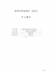 本科生毕业设计(论文)外文翻译原文标题ABriefDescriptionofLiftTruckSystem译文标题自卸汽车举升系统浅谈作者所在系别机械工程系作者所在专业车辆工程—41—译文标题自卸汽车举升系统浅谈原文标题ABriefDescriptionofLiftTruckSystemDesign作者高欲培译名高欲培国籍中国原文出处自卸汽车举升系统浅谈原文:Inthispaper,dumptruckthroughabriefdesignanalysis,inviewofthelengthofthelargerfeaturesofheavy-dutydumptruck,liftingthesy...