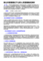 新公共管理理论下公职人员管理模式探析 摘 要: 在新时代治理理念的指导下, 创新理念应运而生, 公共管理在大时代背景下发生了变化, 公共部门人力资源管理理念愈发重要, 人力资源管理工作影响着整个公共部门的发展, 满足人们的物质需求与精神需求。随着公共部门人力资源管理出现的问题越来越明显, 新公共管理理念被逐步运用到公共部门人力资源管理中。据此, 主要结合当前公共部门人力资源管理存在的问题, 探讨新公共管理视角下如何做好人力资源管理。 关键词: 公共管理; 人力资源; 公共部门;以创新社会治理体制为背景, 政府职能逐渐由管理型向服务型转变, 政府也将变为公共行政管理的主要执行部门。公共...