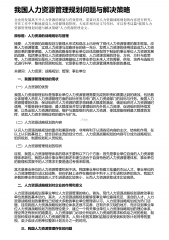 我国人力资源战略规划分析及其管理