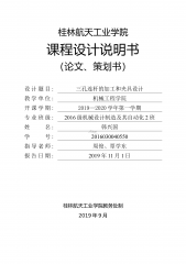 桂林航天工业学院课程设计说明书(论文、策划书)桂林航天工业学院教务处制2019年9月设计题目:三孔连杆的加工和夹具设计教学单位:机械工程学院开课学期:2019—2020学年第一学期专业班级:2016级机械设计制造及其自动化2班姓名:韩兴国学号:2016030040550指导老师:周俊、覃学东报告日期:2019年11月1日桂林航天工业学院课程设计说明书摘要机械制造工艺学课程设计是在我们学完了大学的全部基础课、技术基础及大部分专业课之后进行的。这是我们在进行毕业设计之前对所学课程的一次深入的综合性的链接,也是一次理论联系实际的训练。因此,它在我们的大学学习生活有十分重要的地位。就我个人而言,我希望...