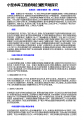 小型水库工程的除险加固策略探究 水库论文(发表必看范文8篇)之第七篇 摘要:随着社会在不断的进步,人们对自然环境的各种问题越来越重视,可持续发展的理念也得到社会各界的认可,国家对自然资源的使用和开发进行严格的把控。水资源在诸多自然资源中占据了十分重要的地位,人们的日常生活离不开水资源,所以要对水资源进行合理的利用和保护。水利工程作为国家的重点工程来说,对水资源能够起到很好的保护作用,这要求相关部门要重视水利工程中小型水库工程的除险加固措施,使水库能够发挥有效的作用,为人们的日常生活提供便利。有鉴于此,本文在充分基于相关文献研究以及自己多年工作经验情况下就小型水库工程出险加固措施展开探讨,以...