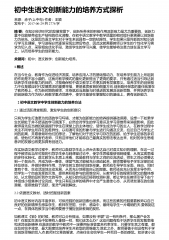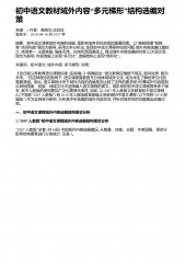 “”初中语文教材域外内容多元梯形结构选编对策来源:v作者:高有华;沈欣欣发布于:2018-04-16共5537字摘要:初中语文课程域外内容的选编,“”是影响培养目标实现的重要因素。以泰勒原理和教“”育共同利益理念为指导,采用文本分析法,发现初中语文课程存在的问题:域外内容选编比重较少,类型单一,主题狭隘,编排无序。在剖析原因基础上,提出域外内容选编的对策:以大语文观理念为指导,“”内容选编上实现多元化,“”选编结构上实现梯形化。关键词:初中语文;域外内容;多元梯形;对策;《全日制义务教育语文课程标准(实验稿)》明确指出:“语文教育应植根于现实,面向世界,面向”未来。在这种理念的指导下,语文课程...
