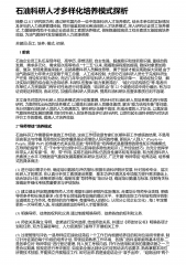 石油科研人才多样化培养模式探析摘要:以KT研究院为例,通过研究国内外一些中高级科研人才培养模式,结合本单位的实际情况及多年的人力资源管理经验,同时借鉴其他兄弟油田的人才培养模式,深入研究论证员工培养模式,力图能够有助于石油企业改进员工素质培养模式,做到既能提高员工综合素质又能提高培养效益,为油气勘探开发发展提供人力资源保障.关键词:员工;培养;模式;初探; 1 前言石油企业员工队伍呈现年轻、高学历,思想活跃,自主性强、超越意识和创新意识强,重视自我发展、需求多元化、需求层次高等特点."十二五"以来,随着勘探程度的提高,勘探对象更加隐蔽、复杂,发现难度越来越大,这就需要科研人员解放思想、勇于创新...