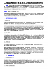人力资源管理与思想政治工作的相关关系探究 摘要:社会的发展与日俱进,高校人力资源管理也需要一定的改革来适应社会的迅猛发展。人力资源管理是高校最重要的一个环节,它为思想政治工作的开展注入生机与活力,而思想政治工作对于人力资源管理来说也有着不可或缺的作用。人力资源管理与思想政治工作相互补充相互协和,成为了我国教育体系中必不可少的环节。关键词:高校;人力资源管理;分析;当前我国尚处于高速发展的时期,社会成分复杂、组织形式和生活方式多样化,在这样的大环境下,各种社会阶层体现出种种矛盾,心理也呈现出不同的色彩,这就要求高校教师在面对这些新问题时,需要针对这些问题进行分析,然后再加以解决。一、展开思想政...