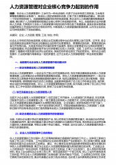 人力资源管理对企业核心竞争力起到的作用摘要:在企业人力资源管理中,工会作为一种合法组织,代表了企业所有员工的权益,工会是主要搜集和整理企业各部门、各岗位人员的详细资料信息,汇集了员工想要提出的建议、想法的一个综合性组织部门。当前随着我国国民经济的快速发展,各企业对人力资源的重视程度越来越高,意识到了人力资源管理对提高企业核心竞争力所起到的作用。所以,当前很多企业开始重视人力资源,尤其是对工会在人力资源管理中的地位和作用引起了高度重视,逐渐开始采取措施加强两者在工作实践中的互补性和协作性,不断提高人力资源管理的职能效果,从而为企业的长远可持续发展打下坚实的基础。关键词:企业;人力资源;管理;工会...