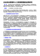 企业安全管理中人力资源管理的运用研究 摘 要: 安全是企业正常生产和经营的保障, 必须非常重视。要发挥出人力资源管理作用, 才能不断改善效果, 创建出安全、稳定的发展环境。文章先分析相互之间关系, 进一步从不同方面展开论述, 采用科学合理的方法, 从而促进可持续发展。 关键词:人力资源管理; 企业安全管理; 应用探究;在市场经济体制下, 企业之间竞争非常激烈, 因此要保持自身核心竞争力。安全作为一个重要方面, 可以减少事故发生, 避免造成的不必要损失, 保证一切工作顺利开展。结合实际情况, 制定出完善的策略, 不断提高安全等级, 创造出巨大经济效益。 1 、人力资源管理与企业安全生产的...