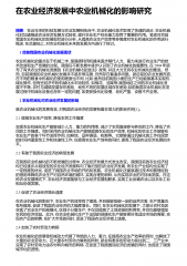 研究农业机械化与农业经济再生产 摘要:在农业发展的过程中,在过去通常采用人工种植方式,不仅生产效率低下,而且由于技术落后,导致农业生产的经济收益不高。通过农业机械化技术,能够有效提高农业发展的生产效率,并且更加科学有效的针对农作物进行管理,同时也可以更好的提升农作物产量,对于农业的发展具有非常关键的作用。从目前来看,通过农业机械化技术对于农业经济再生产具有非常重要的关系。通过对于农业经济再生产进行分析,明确农业机械化技术的重要作用,从而为农业机械化技术,在农业经济再生产的应用推广提供理论支持。 0 引言在农业生产的过程中,农业机械能够很好的取代人工作业,并且大大的提升了农业生产的效率。尤其是...