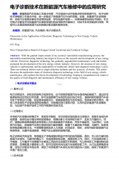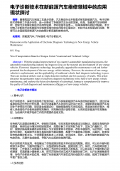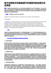 电子诊断技术在新能源汽车维修中的应用方式及类型摘要:新能源汽车属于新型汽车,近几年开始进入到我国汽车行业中并不断发展。为此,本文首先分析了电子诊断技术在新能源汽车维修中的应用优势,其次分析了电子诊断技术在新能源汽车维修中的应用类型及方式,旨在为电子诊断技术在新能源汽车维修中的应用提供参考,以此来提高新能源汽车维修质量和效率。 关键词:新能源汽车;维修;电子诊断技术;ApplicationofElectronicDiagnosisTechnologyinNewEnergyVehicleMaintenanceWangZhengke Abstract:Newenergyvehiclesareanew...