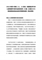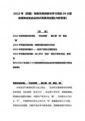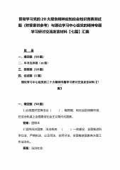 贯彻学习党的20大报告精神应知应会知识竞赛测试题(附答案供参考)与理论学习中心组党的精神专题学习研讨交流发言材料【七篇】汇编目录一、填空题(50题)二、单项选择题(30题)三、简答题(10题)四、论述题(1题)理论学习中心组党的二十大精神专题学习研讨交流发言材料【7篇】一、填空题(50题)1.必须更好发挥法治()、稳预期、利长远的保障作用,在法治轨道上全面建设社会主义现代化国家。答案:固根本2.坚持法治国家、法治政府、()一体建设,全面推进科学立法、严格执法、公正司法、全民守法,全面推进国家各方面工作法治化。答案:法治社会3.增强党组织政治功能和(),坚持大抓基层的鲜明导向,把基层党组织建设成...