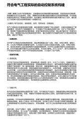 符合电气工程实际的自动控制系统构建[摘要]随着工业生产的发展进步,对电器自动化控制的要求越来越高,而实现自动化控制系统构建的方式又比较多样。因此,需要结合实际情况选择合理的方式实现系统构建。针对系统的具体应用作出了简单的分析阐述,在此基础上就控制系统的组成和功能作出了论述,最后提出了实现电气自动化控制系统的一些措施方法。[关键词]电气自动化;控制系统;应用;现场总线;远程监控。电气工程的进步发展使得其在规模、复杂程度等方面都有了很大的提升,这就对控制提出了更高的要求。因为电气工程规模的扩大,不仅增加了安全事故出现的几率,也扩大了其出现范围,更提高了故障诊断和处理的难度。若是不能实现自动化控制,...