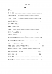 毕业设计目录摘要.......................................................Abstract.......................................................第一章绪论.............……………………………………………...1.1本课题的意义…………………………………………….31.2本文的主要工作……………………………………………31.3选择设计方案………………………………………3第二章PLC的概述…………………………………………42.1PLC的基本知识………………………………………….....
