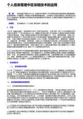个人信息管理中区块链技术的运用 摘 要: 区块链技术即去中心化, 让系统中任意多个节点某时刻的全部信息交流数据被密码学翻译到一个数据块, 并借助分布系统将数据加密。文中通过介绍区块链技术, 结合现代社会的个人信息特点, 描述基于区块链技术的信息管理方式和特点, 以期区块链技术原理应用到个人信息管理系统。 关键词:区块链技术; 个人信息; 隐私保护; 加密处理;0 、引言2008年, 金融业崩溃, 一种加密电子货币, 比特币应运而生。比特币是一种P2P形式的数字货币, 这种形式意味一个支付系统去中心化。随着比特币的兴起, 作为其核心支撑的区块链技术聚焦了国内外的视线。文献[1]表明区块链...