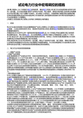 试论电力行业中宏观调控的措施[摘要]我国从2002年底进行电力体制改革、建设电力市场以来,电力行业快速发展,但同时也存在一些问题。本文结合我国目前产业结构不合理、电力紧缺、煤电价格矛盾以及电网与电源建设不同步等问题,介绍了调整产业结构、实行峰谷分时电价、实施煤电价格联动和加速电网建设等宏观调控措施,指出目前在建设电力市场的同时,发挥国家宏观调控的作用对促进我国电力行业的发展是十分重要的。[关键词]宏观调控;电力紧缺;分时电价;煤电联动;电网建设一、前言电力行业是关系到国计民生的重要基础产业和公用事业,它为国民经济发展提供能源,并且与社会发展、人民生活密切相关,安全、稳定和充足的电力供应,是国民...