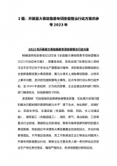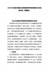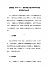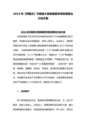 2023年学校开展重大事故隐患专项排查整治行动方案与在重大事故隐患专项排查整治行动动员部署会上的讲话稿(两篇稿)学校2023年开展重大事故隐患专项排查整治行动方案为贯彻落实习近平总书记对做好安全生产工作的重要指示批示精神,牢固树立安全发展理念,坚持人民至上、生命至上,国务院安委会近日印发《全国重大事故隐患专项排查整治2023行动总体方案》,为切实加强校园安全工作,维护校园稳定,保证教育、教学秩序的正常运营,结合学校实际,经研究决定在2023年4月一6月全面深入开展校园重大安全隐患排查整治工作,为确保隐患排查整治工作的有效落实,特制定本实施方案。一、加强领导,确保实施为保证二个月安全隐患排查整治...