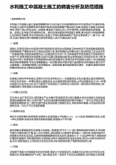 水利施工中混凝土施工的病害分析及防范措施1实际病害分析水利施工中混凝土施工是极其重要的环节,由于施工中所使用的材料不同,因而会产生诸多种类,并且施工过程中还需要考虑环境条件影响,因而就需要严格的运行机制.但是由于混凝土结构的特性,导致了其必然会出现一些病害,着是由于结构以及工作环境导致,主要的病害包括裂缝、冻胀、空蚀以及冲磨,另外碱骨料反应、碳化和溶蚀侵蚀共称混凝土病害,其中包括三种物理病害以及四种化学病害.其中共称自身以及施工环境也是影响病害产生的主要因素之一,基于这一差异,在进行病害处理中便需要注意危害程度,以此作为基础进行处理.1.1裂缝混凝土在使用过程中会受到外界环境的影响,因而会出现...