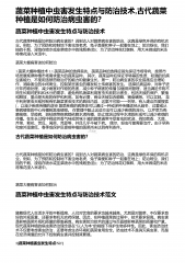 蔬菜种植中虫害发生特点与防治技术,古代蔬菜种植是如何防治病虫害的?
