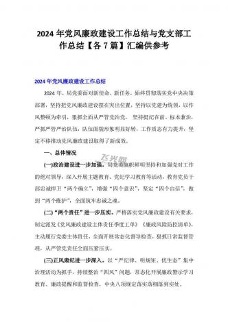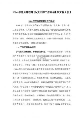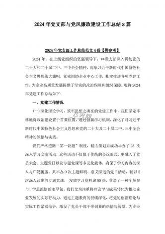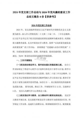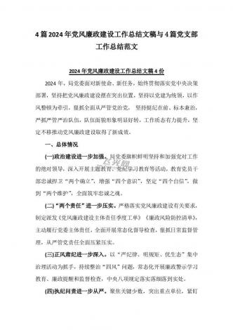 4篇2024年党风廉政建设工作总结文稿与4篇党支部工作总结范文